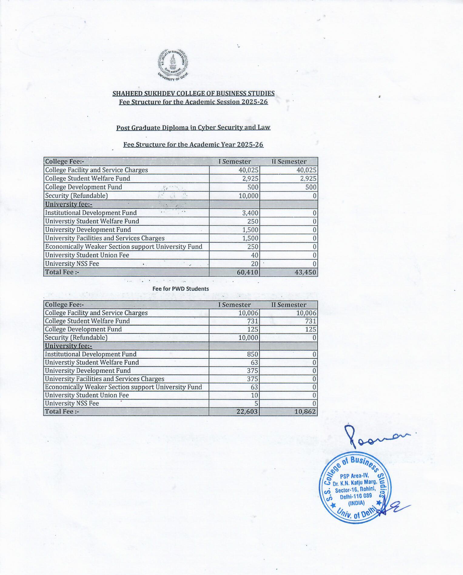 Application Fee for PGDCSL